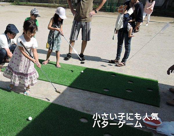 | お父さんの指導 | 盛況のパターゴルフ | パターゴルフの景品選び |